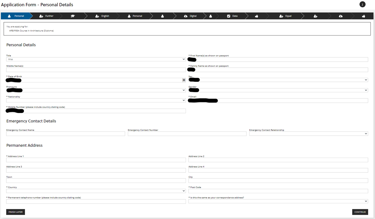 ⬆️ Back to top of guideApplication Form - Personal Details