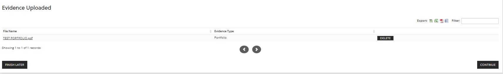 If you are not ready to upload your digital portfolio yet, you can click 'FINISH LATER' and log back in later to upload the portfolio, or upload it at the end in the 'Evidence' section.