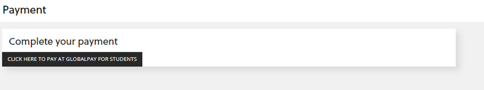 You will then be taken to the following screen to complete your payment. Click the link 'CLICK HERE TO PAY AT GLOBALPAY FOR STUDENTS' and you will be taken to an external website to make the payment.