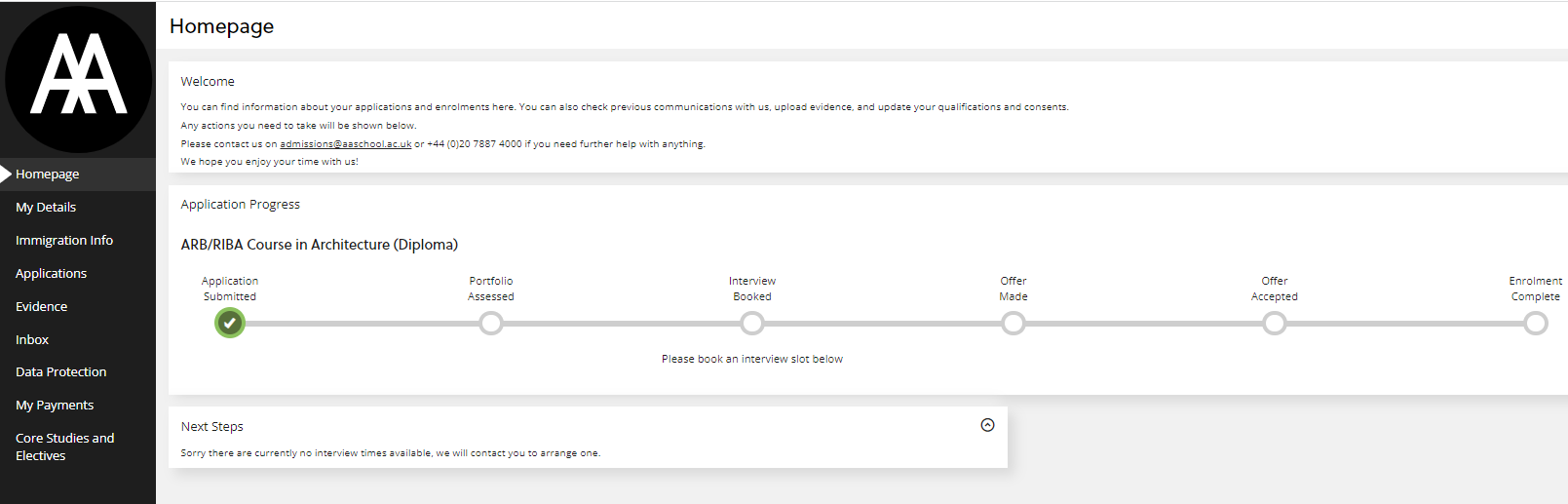 You can also check the progress of your application at any time by logging in to the AA Applications Portal.